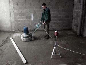 При укладке пола на существующее основание необходимо произвести тщательную подготовку основания. Если в старом основании есть трещины, то их необходимо расширить и заполнить специальным ремонтным составом. Участки бетонного основания, не поддающиеся ремонту, необходимо полностью демонтировать и уложить новый бетон. Перепады по высоте снимаются фрезерной машиной. Образовавшуюся пыль и шлам удаляют с помощью промышленного пылесоса.